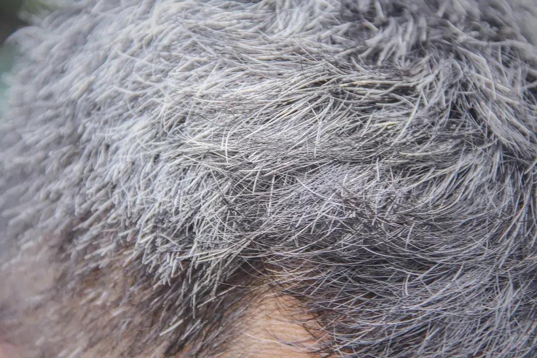 這種頭髮變白的機制在於,毛囊裏面的黑色素細胞活力不夠了,不足以產生正常的黑色素,於是長出來的頭髮就不再烏黑。仔細看的話,有的頭髮是灰色的,有的是白色的,灰色的頭髮是色素減少,白色的頭髮是色素完全沒有。