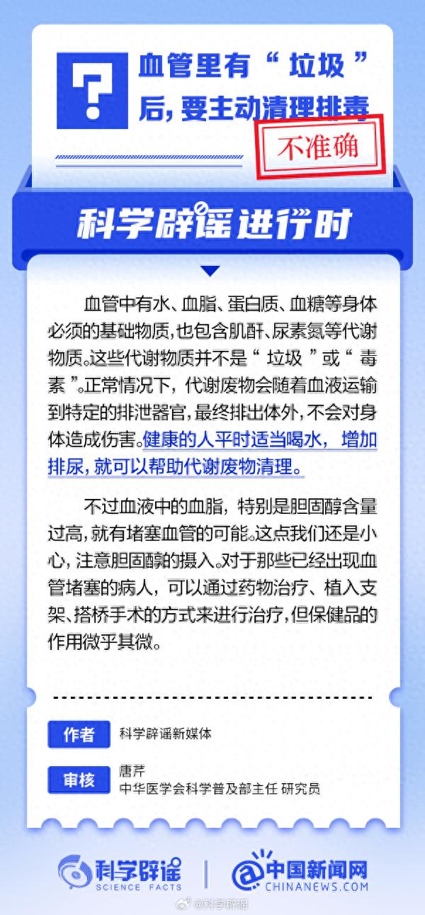 血管裏有“垃圾”後、要主動清理排毒?說法不準確