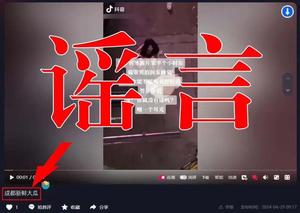 2024年4月29日,陳某在刷抖音時,看到一條視頻內容是一男一女的對話,時間、地點等信息不明。爲博眼球,陳某“腦補”了“女子出軌被抓現形捱打”的文字內容,使用“成都新鮮大瓜”的標題製作了一條抖音視頻,發佈到自己的帳號中。網友非常給力,迅速幫助陳某上了熱搜,成功吸引了公安機關的注意。經覈實該視頻事件並非發生在成都市。