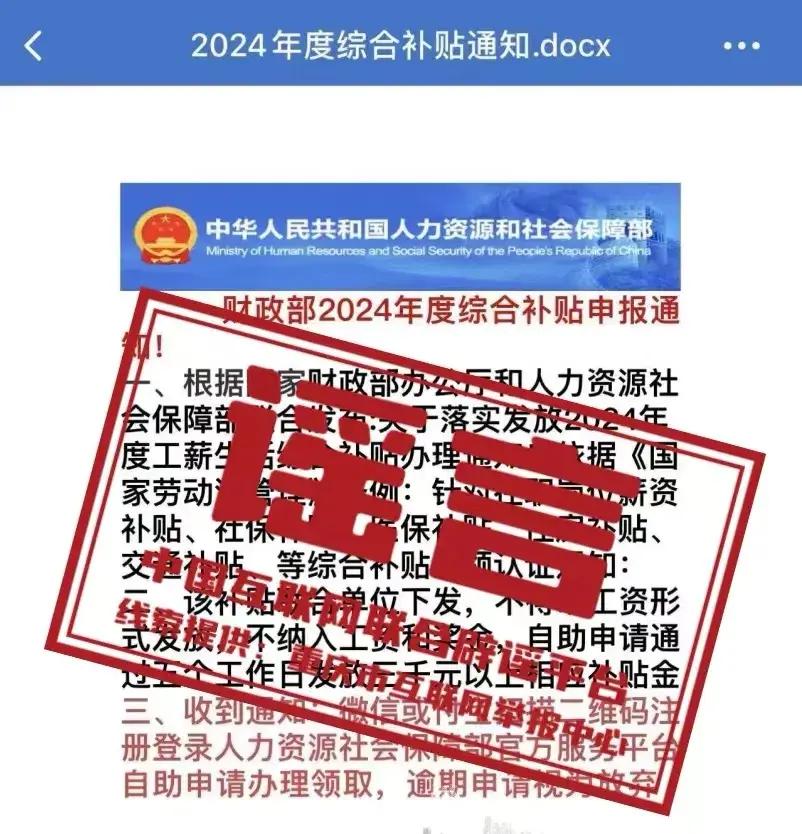 在此之前,也有網民收到“2024年財政個人勞動補貼領取通知”的郵件。郵件稱,“補貼政策僅限於1年內工資扣稅滿3個月以上的中國公民,收到通知後,請及時進行申請登記,逾期視爲棄權領取”,要求使用微信掃描所附二維碼,進入“國家人力資源和社會保障官方小程序”辦理。對此,人力資源社會保障部官方賬號發文明確表示,從未發放過所謂的“個人勞動補貼”,上述郵件爲不實信息且涉嫌詐騙。(來源:“重慶闢謠”微信公衆號)