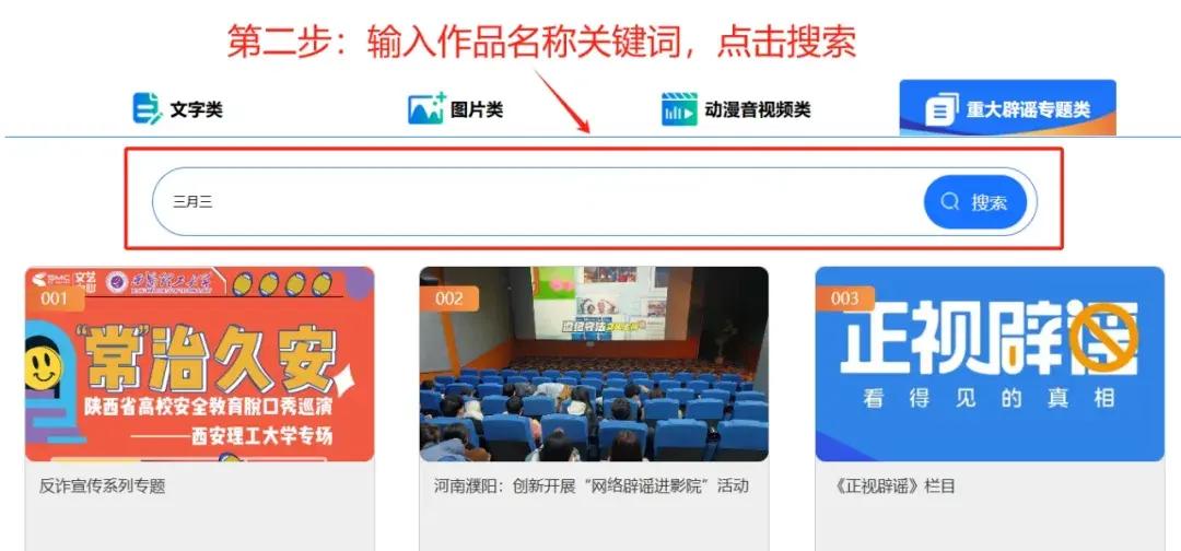 第二步:輸入作品名稱關鍵詞(如“三月三”),點擊搜索