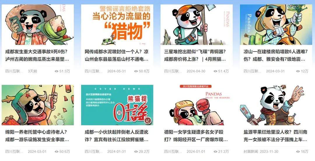 以“融媒”增強闢謠可讀性。闢謠,一個人也不能少。隨着社交網絡的發達,很多網民習慣通過視頻等方式獲取信息,圖片視頻音頻也適應多平臺的推薦算法。第五屆互聯網闢謠優秀作品中,由四川省委網信辦推薦的《熊貓捉謠記》和《闢謠四格漫》都榜上有名,海報+IP卡通形象,讓闢謠生動有趣,充滿可讀性,達到更廣泛的傳播效果。第六屆互聯網闢謠優秀作品徵集活動,也讓我們看到了更多類似的作品。