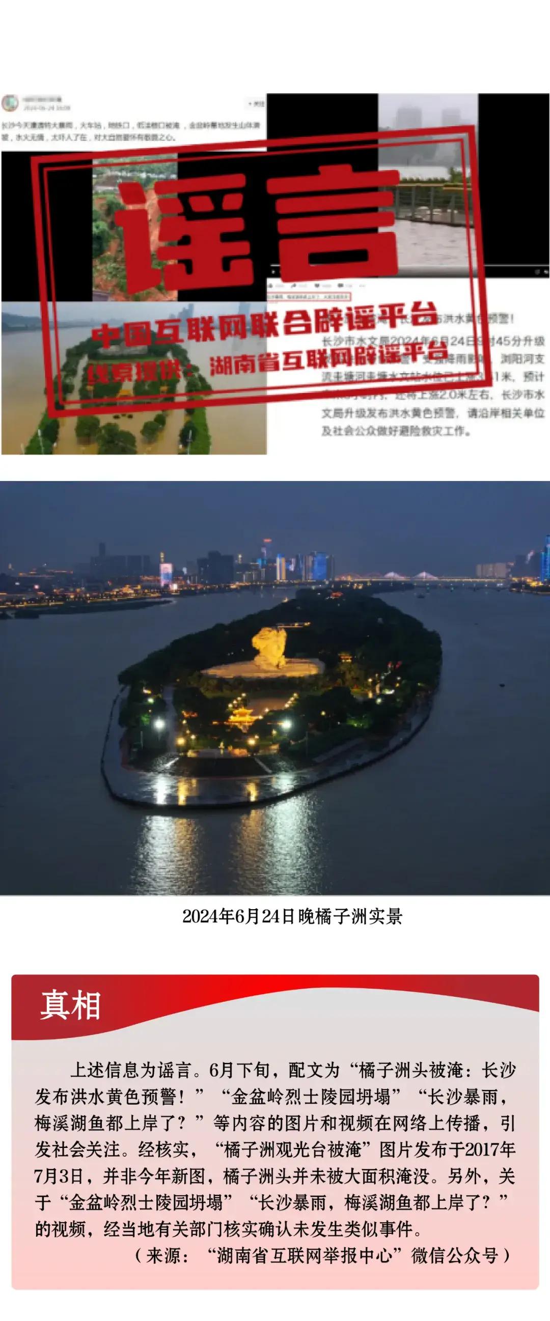 長沙暴雨致橘子洲頭被淹?金盆嶺烈士陵園坍塌?
