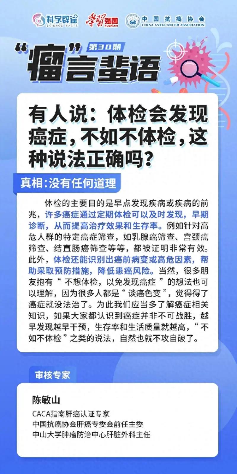 瘤言蜚語|體檢會發現癌症,不如不體檢,這種說法正確嗎?