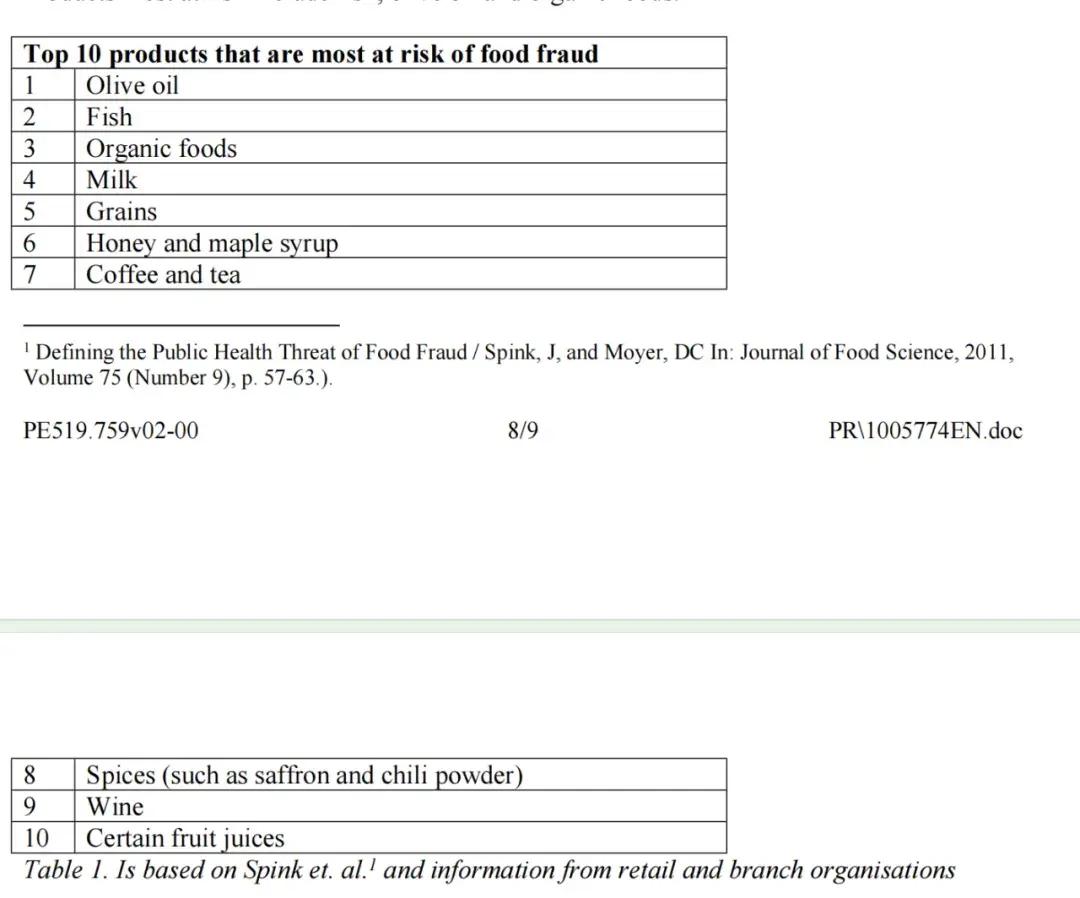 [7]DRAFT REPORT on the food crisis, fraud in the food chain and the control thereof (2013/2091(INI))