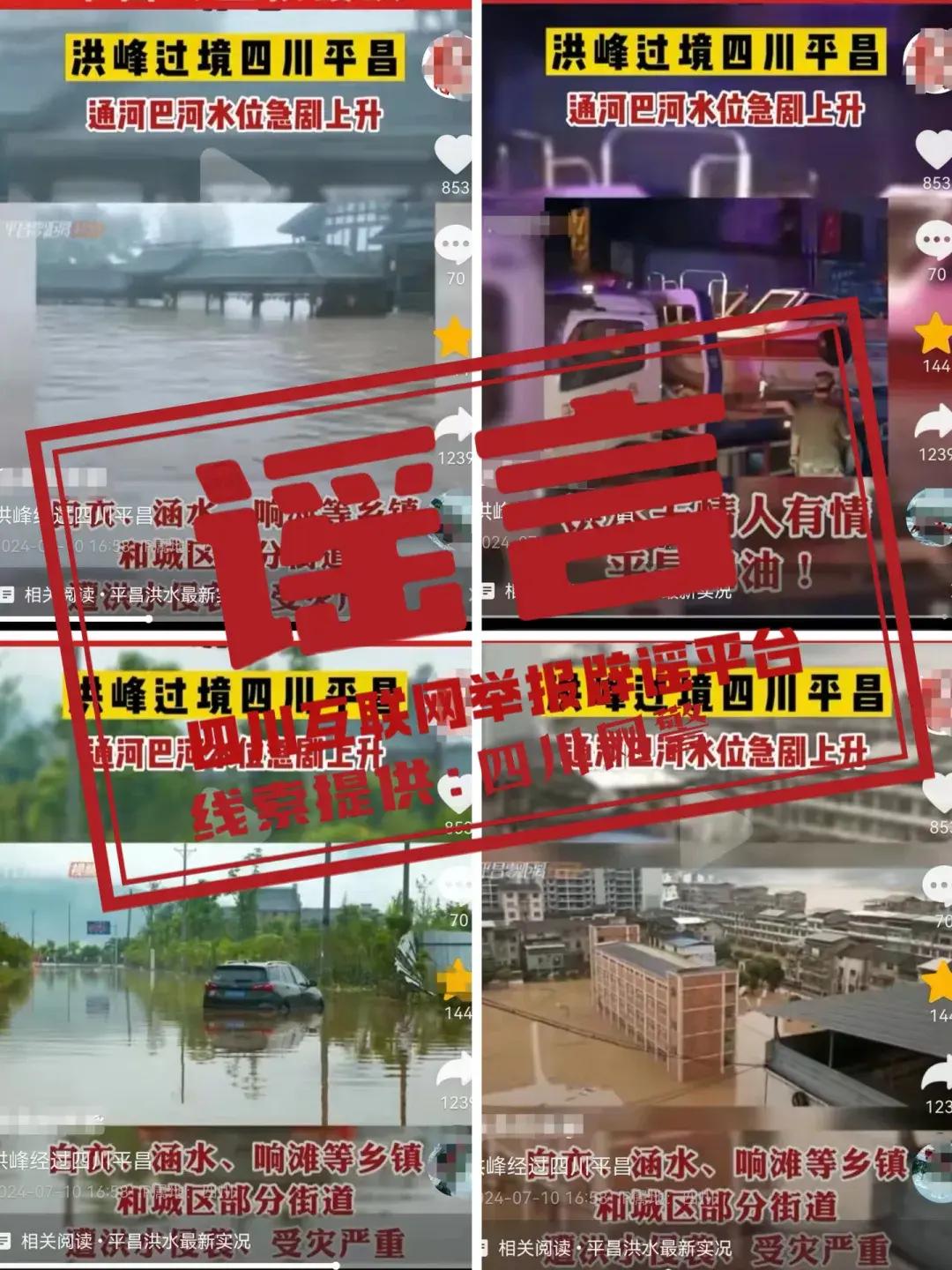2024年7月10日,龍某在某短視頻平臺發佈多篇貼文稱:“洪峯過境四川平昌,部分地區受災嚴重”。經覈實,該內容爲不實信息。龍某將四川省巴中市平昌縣多年前的汛情舊聞重新拼接合成,編造爲平昌縣汛情最新動態後發佈。