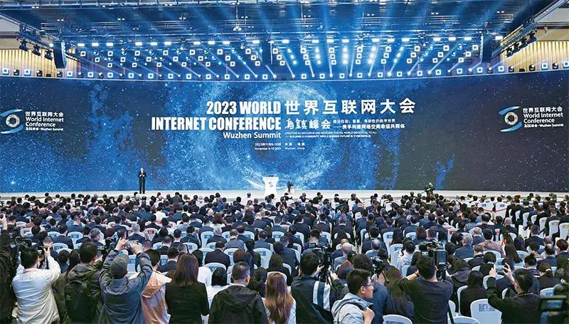 我國創設並連續10年成功舉辦世界互聯網大會烏鎮峯會,峯會期間多次主辦網絡法治分論壇。圖爲2023年世界互聯網大會烏鎮峯會11月8日在浙江烏鎮開幕。新華社記者 黃宗治/攝