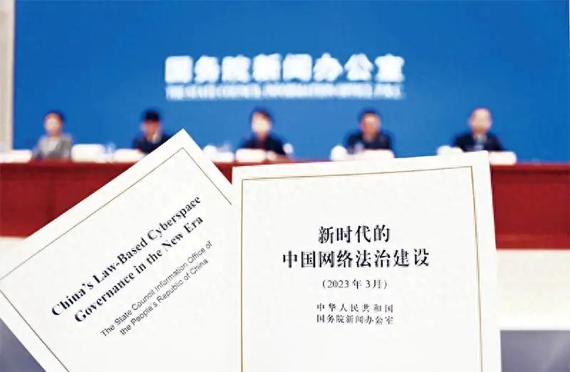 2023年3月16日,國務院新聞辦公室在北京發佈《新時代的中國網絡法治建設》白皮書,並舉行新聞發佈會。圖爲當日拍攝的白皮書。新華社記者 潘旭/攝