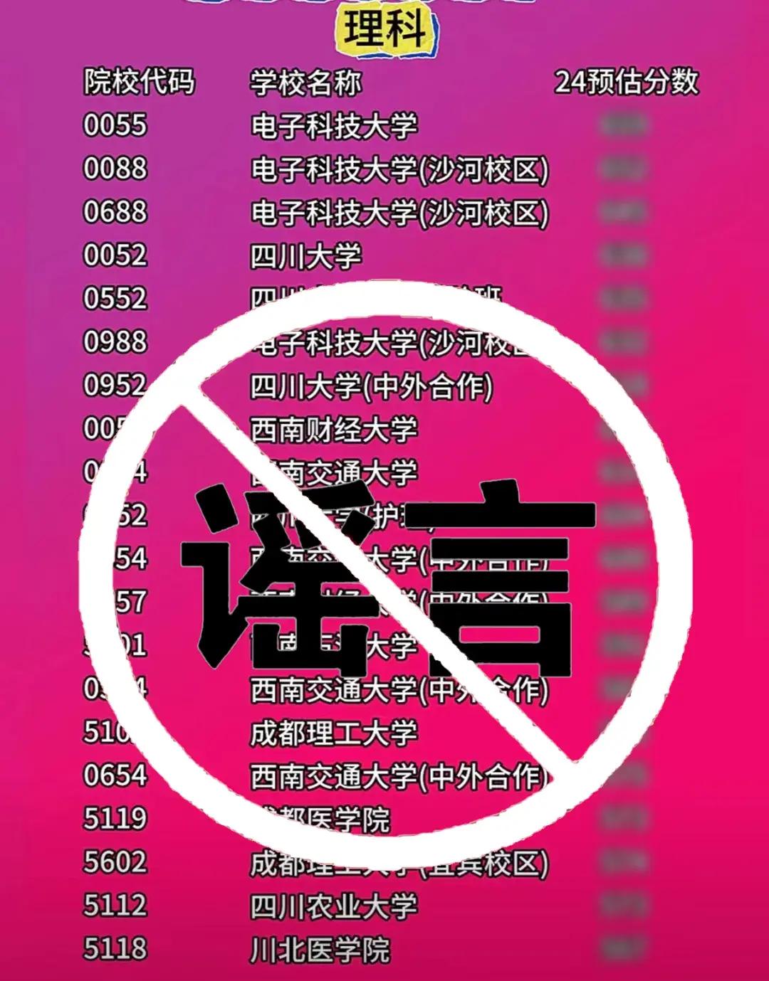 近日,一些社會機構網絡賬號以文章或視頻形式發佈所謂四川省2024年普通類本科一批調檔線,經過四川省教育考試院覈實,這些信息均爲虛假信息,與實際情況不符。