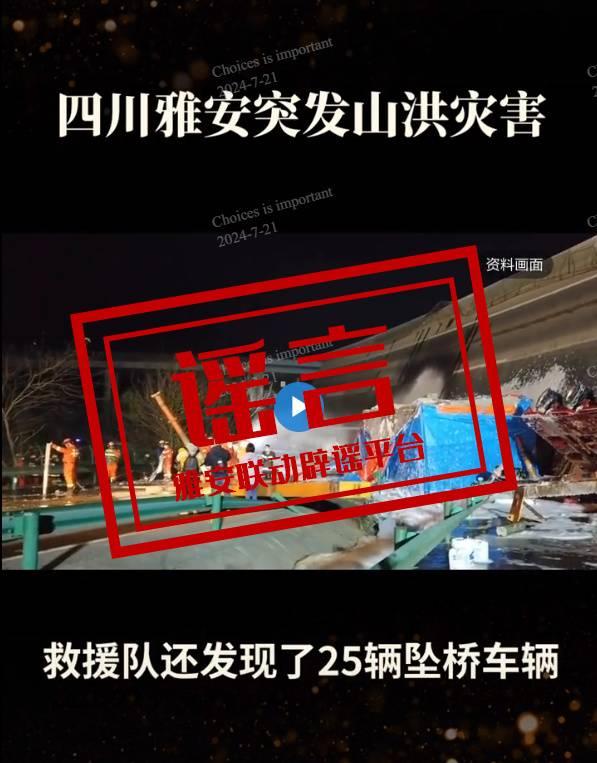 近日,針對漢源縣馬烈鄉“7·20”山洪泥石流災害,網絡上出現了多則不實傳言,包括“已有上百人失去寶貴生命”“涉及的司乘人員多達43人”“此次災害已造成8人死亡,其中,草壩鎮4人,多營鎮3人,名山區1人”等消息,並移花接木,配以與災害無關的圖片。經官方覈實,這些消息均爲謠言。