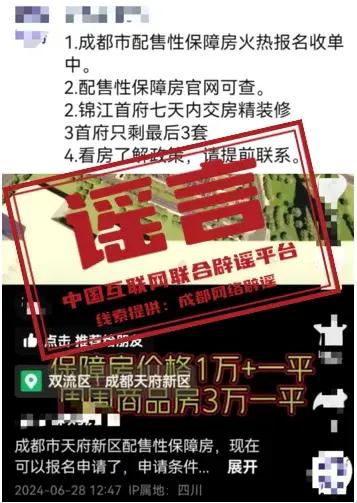 闢 謠 成都市有配售型保障性住房、經濟適用房在售?謠言!