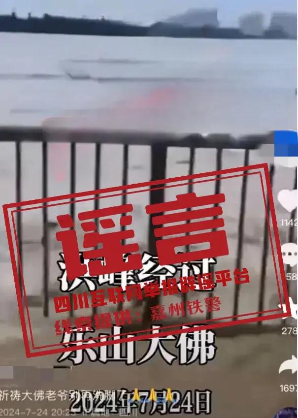 7月26日,樂山市公安局市中區分局發佈消息,男子陳某某將“洪峯經過樂山大佛”的舊視頻素材配文發佈至其短視頻賬號,引發公衆恐慌情緒。目前,民警已對違法行爲人陳某某進行批評教育,並依法予以行政處罰,陳某某也深刻認識到錯誤並主動將視頻刪除。