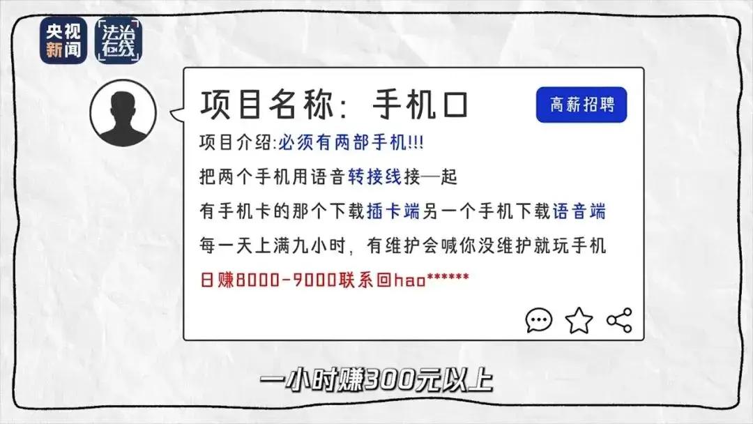 詐騙分子通常將“手機口 ”業務包裝成“高薪”兼職,瞄準了急需用錢的網友。