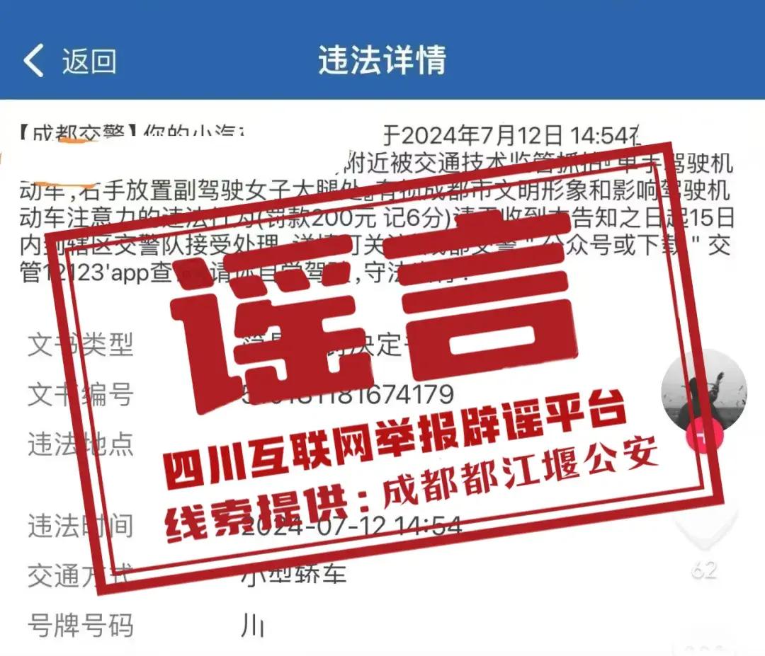 謠言:成都有司機單手開車,右手放置副駕駛女子大腿處被罰?