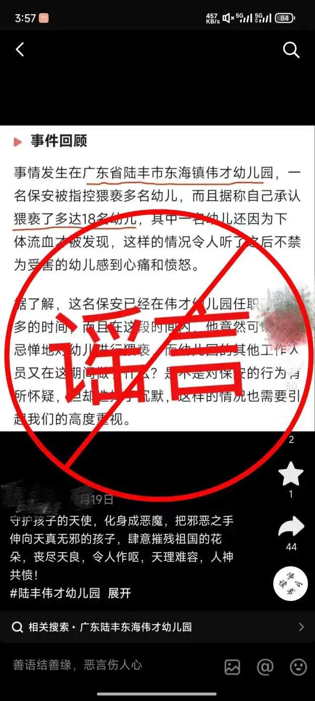 今年7月,網民黃某在某短視頻平臺發佈一段內容爲“一名保安被指控猥褻多名幼兒,而且據稱自己承認猥褻了多達18名幼兒”的視頻。經公安機關覈查,此信息系謠言,黃某爲博取眼球,編造虛假信息將其發佈在某短視頻平臺。目前,公安機關已依法對黃某予以行政處罰。
