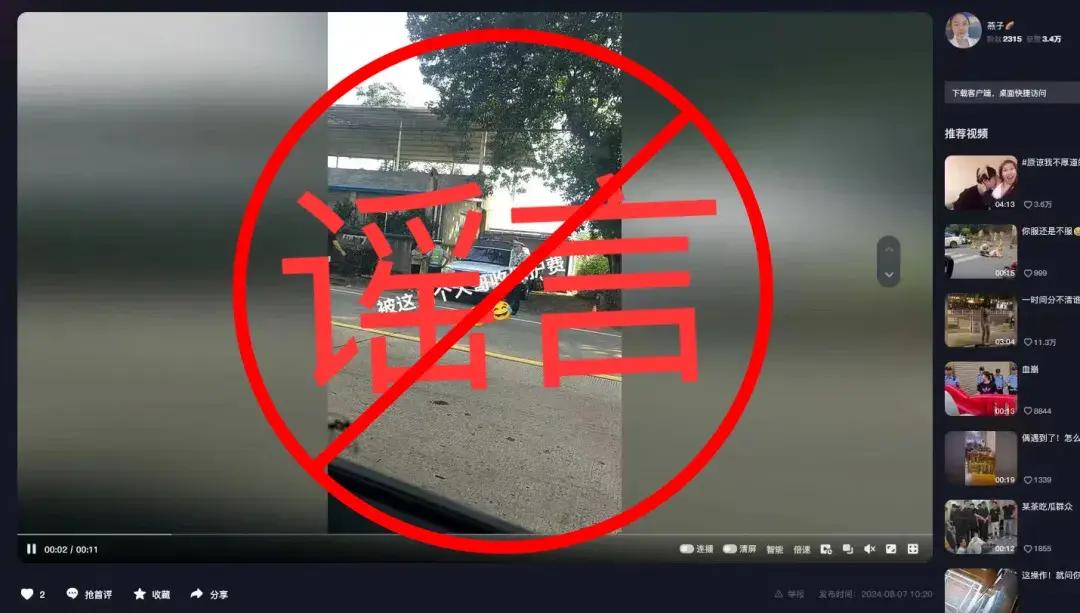 今年8月,網民陳某在某短視頻平臺發佈一段自己手機拍攝交警正常執法的過程,並編輯“被幾個大哥收保護費”等文字,將其發佈在某短視頻平臺,引發網民關注,造成不良的社會影響。經公安機關覈查,此信息系謠言,陳某爲博取眼球,編造虛假信息將其發佈在某短視頻平臺。目前,公安機關已依法對陳某予以行政處罰。