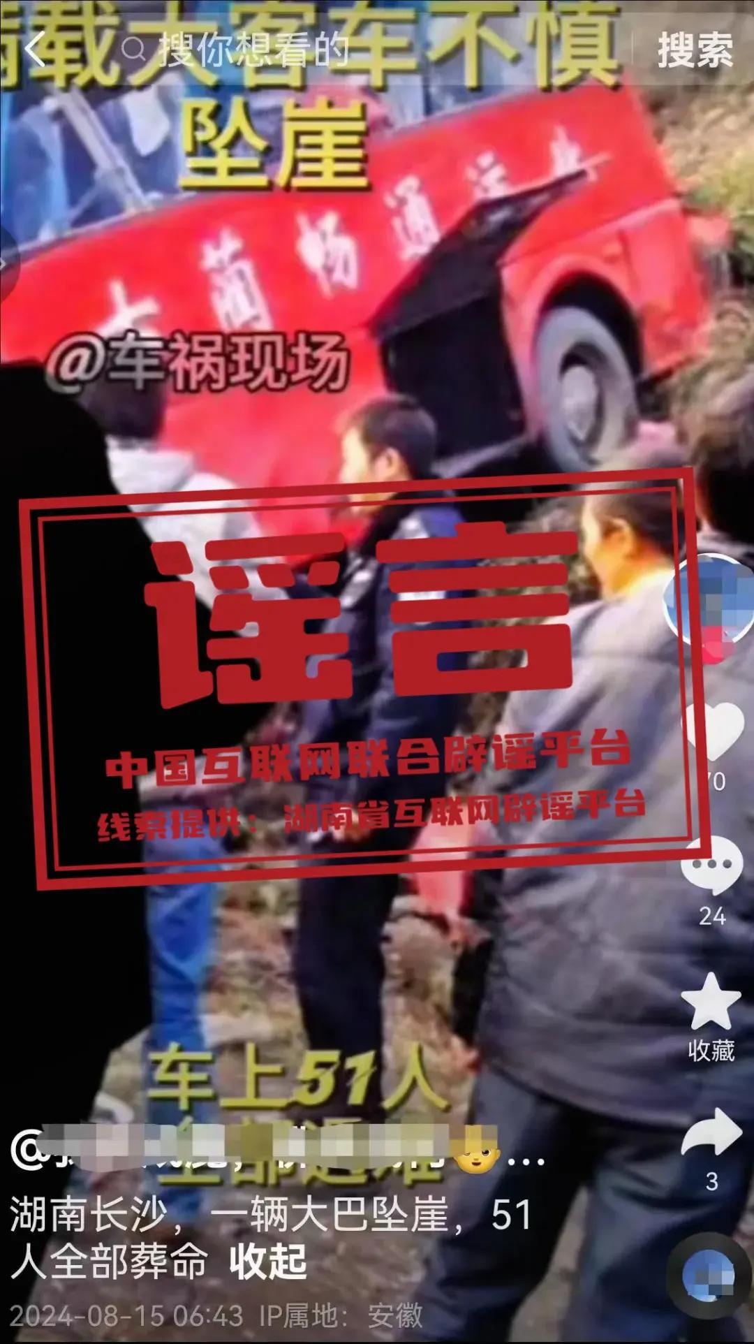 謠 言 湖南長沙一輛大巴車墜崖51人喪命?