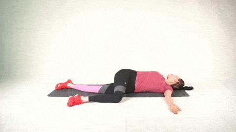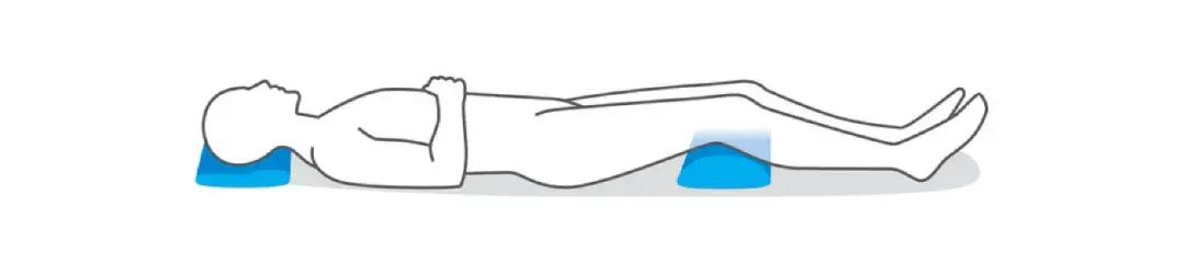 於下肢下方放置合適高度抱枕,令髖關節微微屈曲幫助腰部曲度下沉,此時腰部周圍肌肉可得到“釋放”,同時椎間盤後突壓力降低。