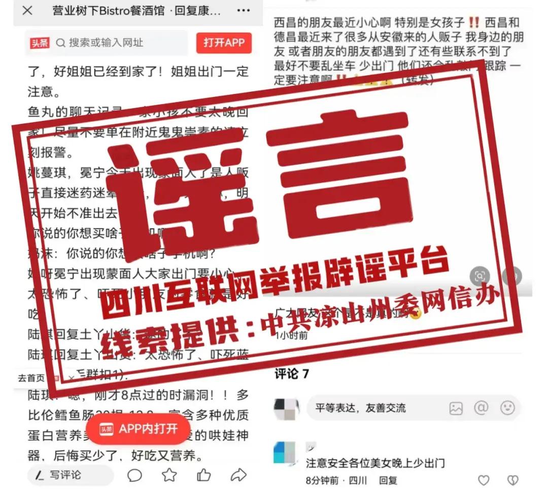 近日,網絡上出現多則信息稱涼山州西昌市、德昌縣、冕寧縣等地出現“不法分子”和“人販子”,同時與個別未成年人走失事件關聯,引起網民關注和恐慌。