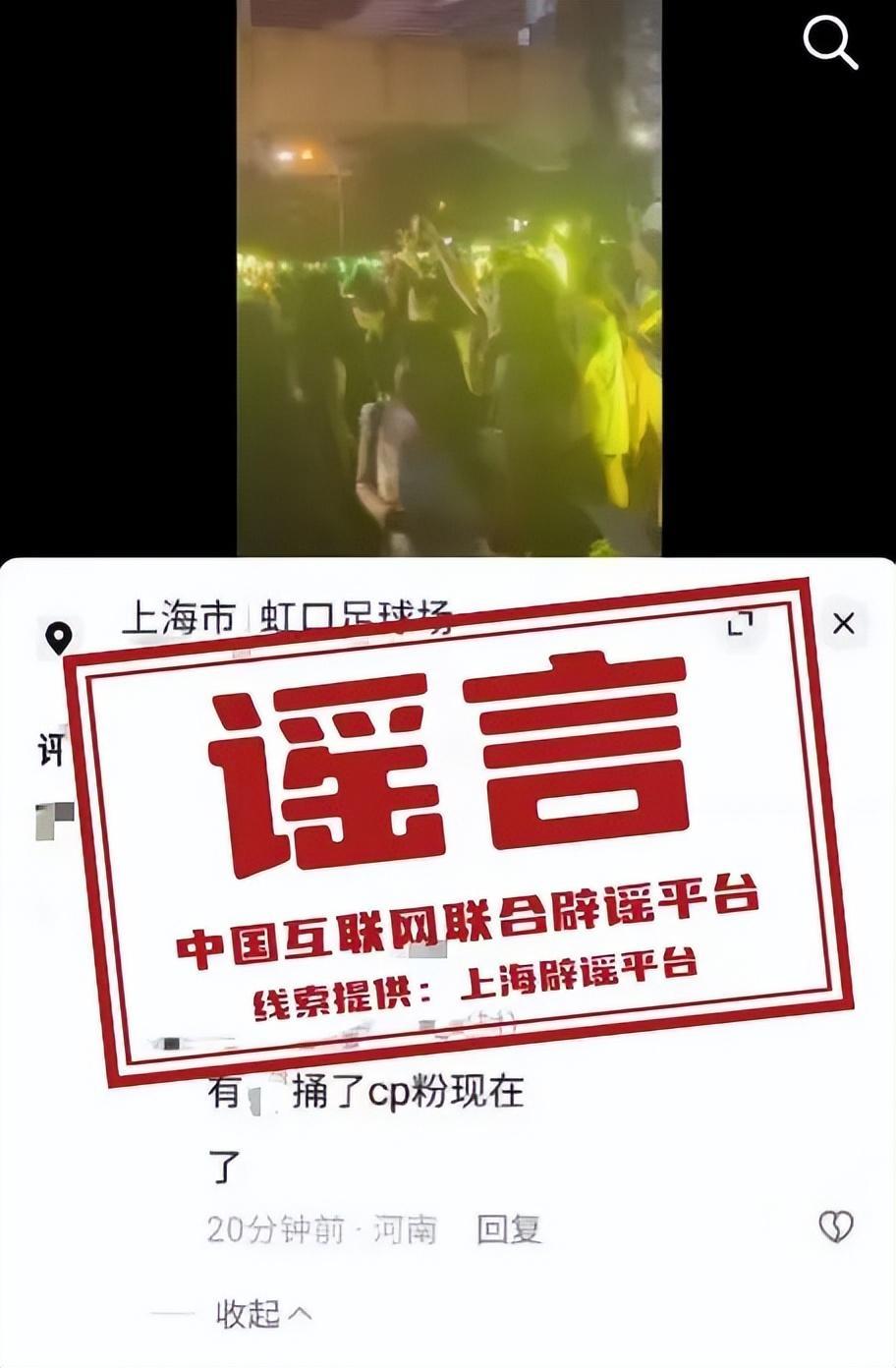 真相:近日,有網民聲稱“虹口足球場8月24日舉辦活動時發生持刀傷人案件”。經上海公安部門覈查,當日活動現場未發生此類案件,該信息系謠言。目前,警方正在追查造謠人員,並將嚴格依法予以處罰。(來源:東方網)