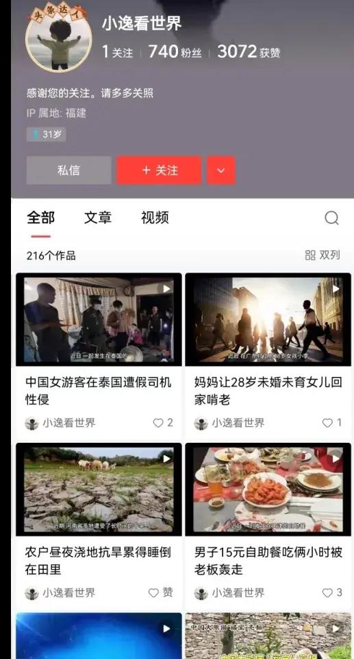 今年6月,廈門警方接到舉報,某互聯網平臺上,名爲“小逸看世界”的賬號發佈了圖文視頻稱:“廣東省五華縣華陽鎮一70多歲老人被毆打致昏迷,其孫子爲此跳河自殺,打人者一審被判九年十個月。”該視頻一經發出,便迅速吸引了大量網友的關注。