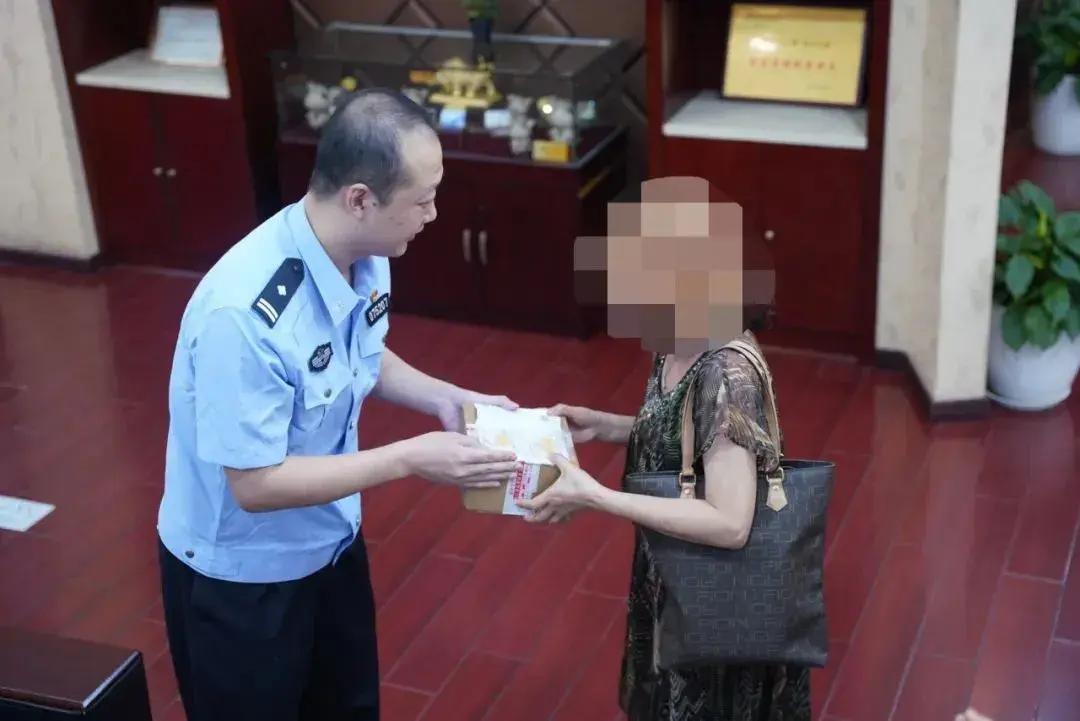 三天後,裝有460克金條的快遞終於在快遞員和民警的護送下來到了沙灣路農業銀行。當張阿姨打開快遞,清點完失而復得的金條後,她轉身牢牢握住民警雙手,激動地對民警表示感謝:“這可是我的養老錢啊!終於回來了,真是太感謝你們了!”在光榮派出所民警們和銀行工作人員的共同努力下,這場千里追擊戰圓滿落下帷幕。
