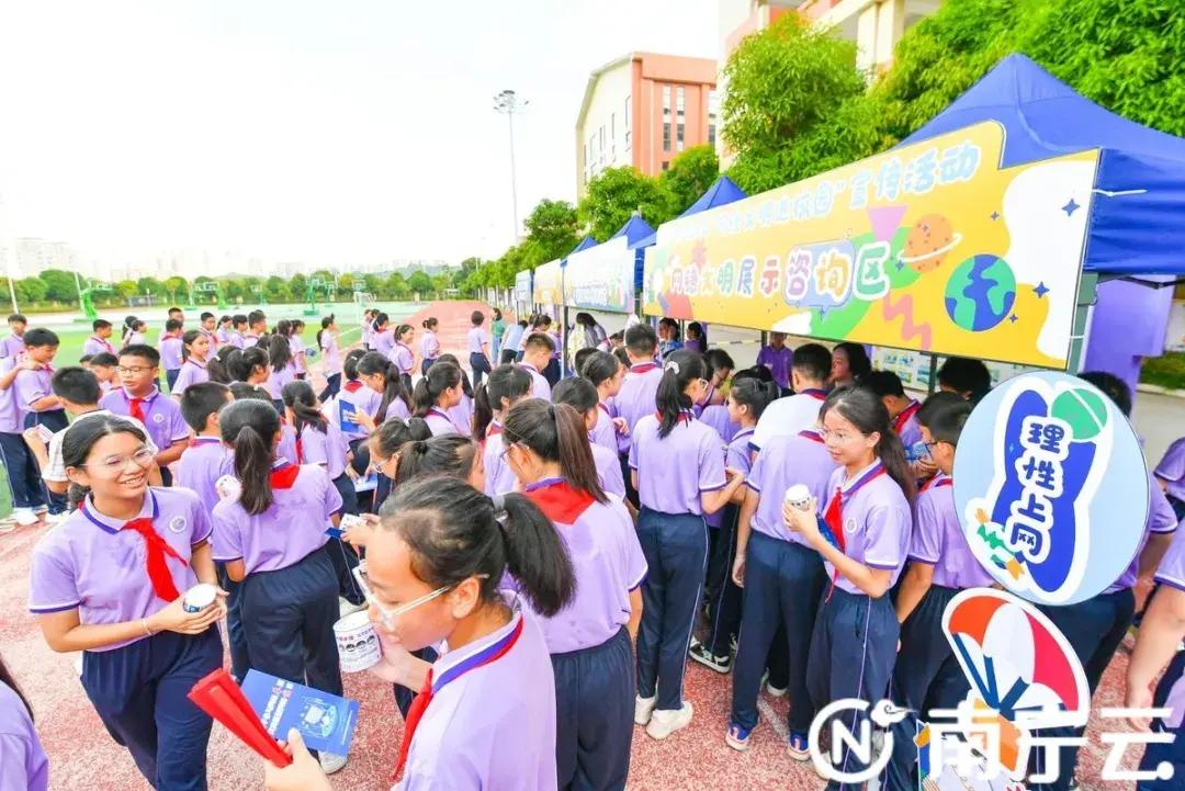 在網絡文明展示諮詢區,工作人員通過發放《攜手參與網絡舉報 共同抵制網絡謠言》等宣傳材料,重點就自覺抵制互聯網違法和不良信息、防止網絡沉迷、做好個人信息保護等網絡文明相關知識進行講解,併發放種植小罐頭,鼓勵學生們在認真學習、健康成長的同時,共植網絡文明之花。