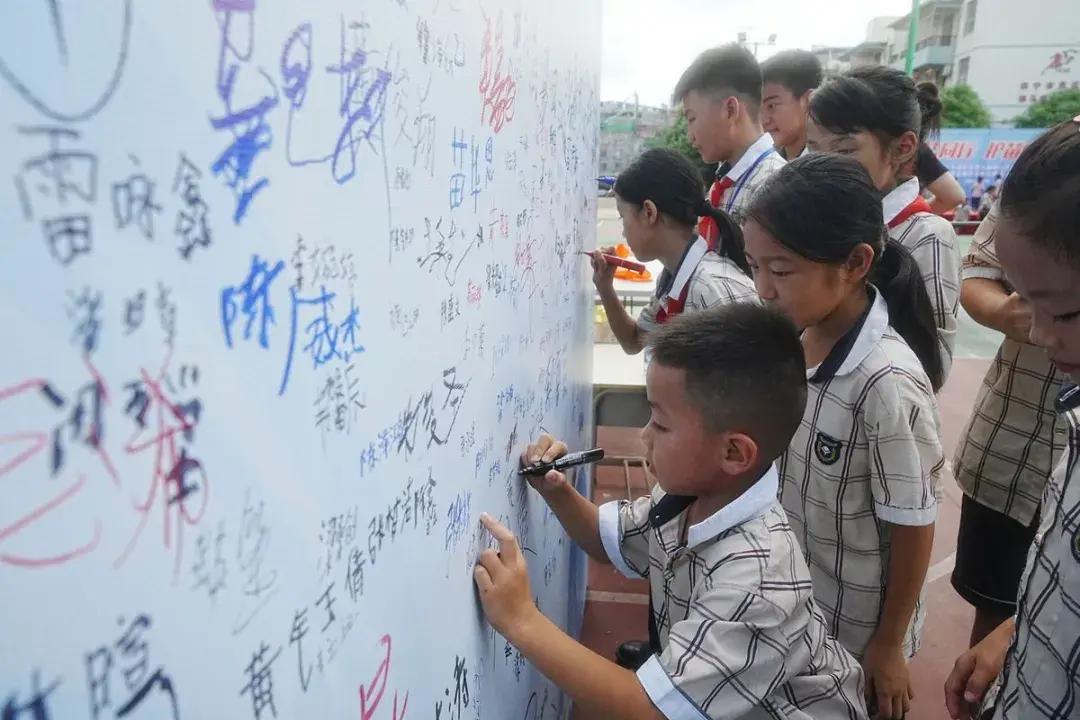 清朗網絡環境千人倡議簽名活動在那馬鎮中心學校開展,學生們紛紛簽名,響應倡議。通訊員 謝蒙龍 攝