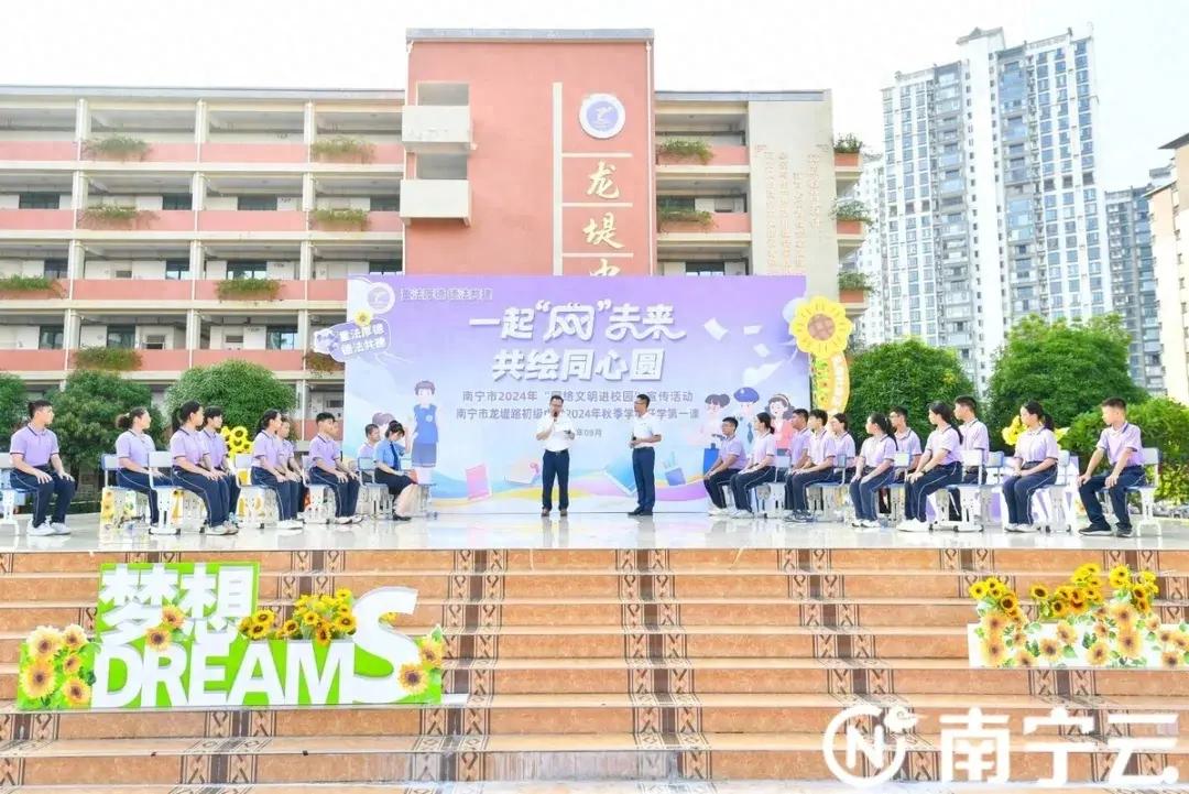 9月2日,南寧市中小學迎來2024年秋季學期開學第一天,由中共南寧市委網信辦主辦,南寧市互聯網違法和不良信息舉報中心、南寧市融媒體中心、中共南寧市良慶區委網信辦承辦的南寧市2024年網絡舉報闢謠進校園宣傳活動分別在南寧市龍堤路初級中學、南寧市春蕾小學、良慶區那馬鎮中心學校舉行。
