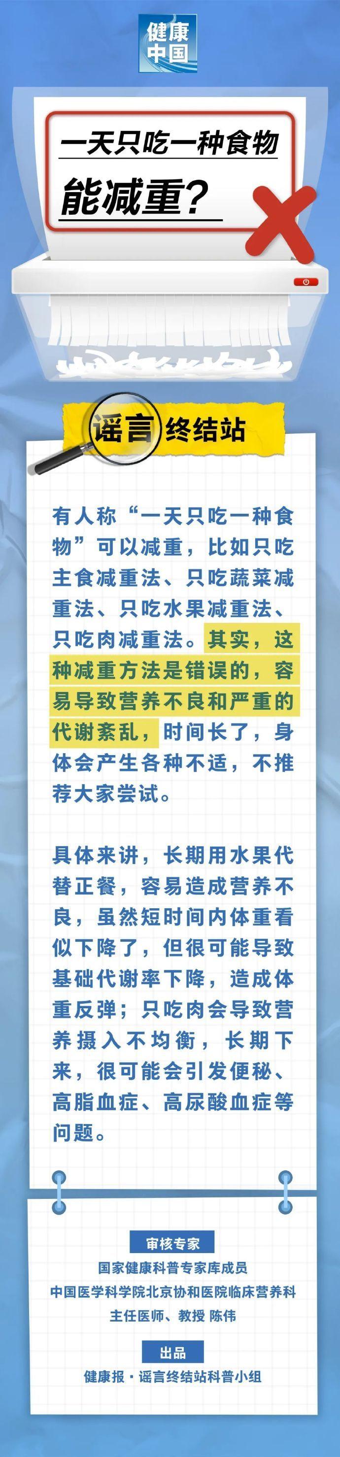 有人稱,“一天只喫一種食物”可以減重,比如只喫主食減重法、只喫蔬菜減重法、只喫水果減重法、只喫肉減重法。其實,這種減重方法是錯誤的,容易導致營養不良和嚴重的代謝紊亂,時間長了,身體會產生各種不適,不推薦大家嘗試。