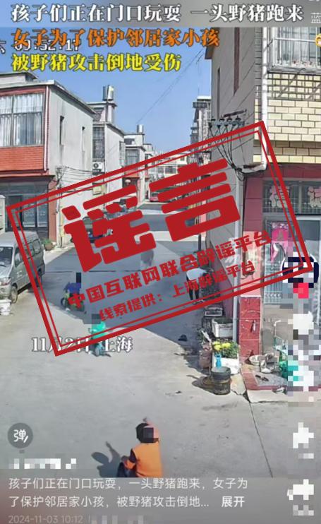 真相:近日,有網民在其自媒體賬號發佈一條“女子爲保護鄰居孩子被野豬攻擊”的短視頻,引發一些媒體紛紛轉發,並聲稱此事發生在上海市青浦區。經上海闢謠平臺調查發現,該視頻並非拍攝自上海。在首發視頻中,並沒有任何畫面、文字、說明等表示該事件發生在上海,只是發佈者的定位在“上海”,但一些媒體在轉發時,“想當然”地以爲這件事發生在“上海”,於是在視頻的標題或內容中突出了“上海”。隨着轉發者越來越多,“上海市郊野豬攻擊人”的錯誤信息也越傳越廣。目前,該視頻的首發者已刪除相關視頻並公開澄清事件真相。(來源:“上海網絡闢謠”微信公衆號)