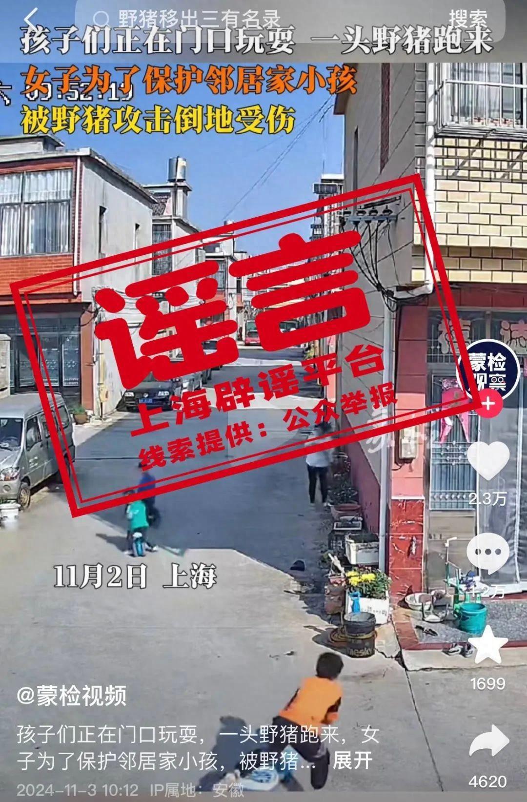 最近,一條“女子爲保護鄰居孩子被野豬攻擊”的短視頻登上了某平臺上海熱榜第一的位置,稱相關事件發生在上海青浦區,部分賬號還給出了具體地址。有網友留言詢問,上海出現野豬了?