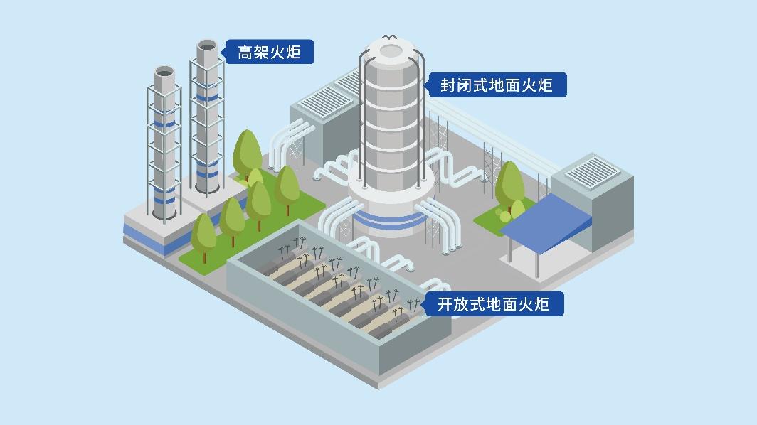 在化工園區中,常見到一種冒着火焰的“煙囪”,其專業名稱叫火炬,是一種技術很成熟的裝置。化工廠的生產裝置在開、停工期間,會產生較多可燃性氣體。如果直接排入大氣,將造成嚴重的環境污染,危害人體健康,並且還可能會產生火災爆炸事故,威脅羣衆人身和財產安全。爲了防止這些危險情況發生,化工廠將這些氣體集中起來燒掉,火炬就是用來處理這些氣體的安全環保設施。根據國家規範要求,火炬有三種常見的形式,分別是:開放式地面火炬、封閉式地面火炬、高架火炬,作用都是相同的。不會。火炬燃燒後的產物是二氧化碳和水,其實和家用燃氣竈點着後產生二氧化碳和水是一樣的。不會。一個火炬頭頂部,有多個長明燈,它們一直在燃燒,時刻準備着點燃排放的氣體,因此一旦有氣體排放,會立即被長明燈點着;並且,長明燈使用的燃料氣來源有兩到三股,不同氣源可以自動切換,因此長明燈可以做到很穩定的燃燒,比家裏的煤氣竈點火還可靠。大家都知道,雲彩是由無數的小液滴組成的,霧霾也是空氣內含有大量小液滴及微小的顆粒物。因此,當氣壓低火炬上方恰好有云彩時,或霧霾天氣時,這些小液滴會對火光形成漫反射,導致火炬上方的天空火光較大,遠處看起來像着火一樣,夜間尤爲明顯。其實完全不用擔心,這種情況是安全的。
