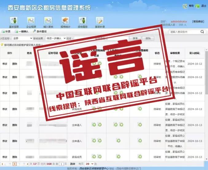 真相:近期,有不法分子僞造西安高新區公租房信息管理系統審覈界面,在網絡上散佈公租房資格審覈虛假信息,引發關注。對此,西安高新區住房和城鄉建設局發佈《關於警惕不法分子僞造虛假信息的聲明》稱,切勿輕信網絡、微信中發佈的高新區公租房相關政策虛假信息及類似委託代辦信息,以避免個人經濟、財產受到損失。高新區公租房資格審覈全程不代辦、不收費,審覈結果均以市級六部門聯審反饋結果爲準。同時,任何通過違規代辦以及提供虛假材料騙取公租房資格的,一經發現,將嚴肅查處,取消保障資格。(來源:陝西省互聯網聯合闢謠平臺)