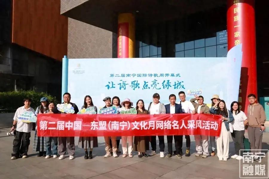 11月6日至10日,由南寧市委網信辦主辦,南寧市融媒體中心、新浪廣西承辦的第二屆中國—東盟(南寧)文化月網絡名人採風活動在南寧舉行,來自全國各地的10多位網絡名人在南寧開啓魅力藝術之旅,感受詩歌與音樂碰撞的火花,探索活力秀美南寧,通過各個社交平臺向全國網民推介魅力邕城。