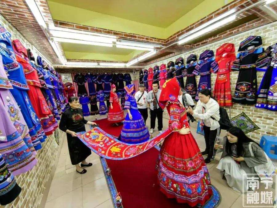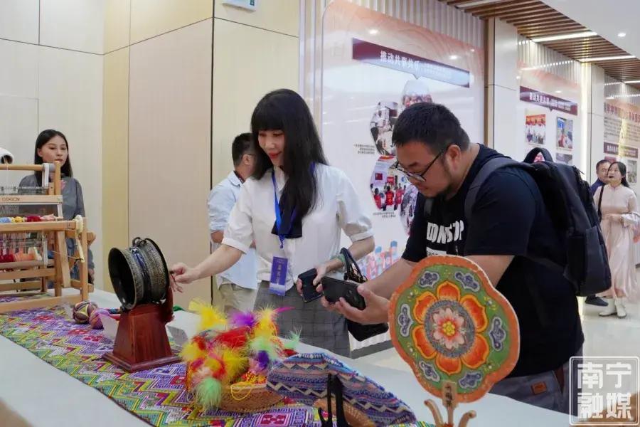 手工繡球、壯族服飾、壯錦、刺繡飾畫……網絡名人們認真地看着一個個精緻的手工作品。微博博主“彼得堡的肥天鵝”表示,希望南寧絢麗多彩的民族風情能夠被更多人看到,在堅守壯錦元素載體和了解壯錦文化的基礎上,構建出壯錦產業鏈,創造出更多壯錦元素的文創產品,讓古老的技藝也能注入新活力。