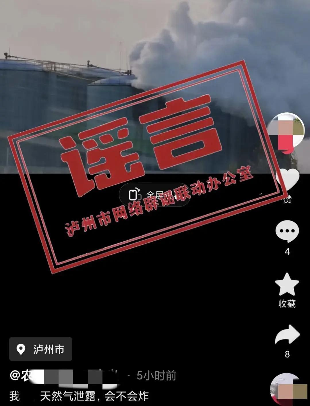 11月17日,有網友通過短視頻平臺發佈視頻,配文稱“天然氣泄漏,會不會炸”,並定位“瀘州市”。