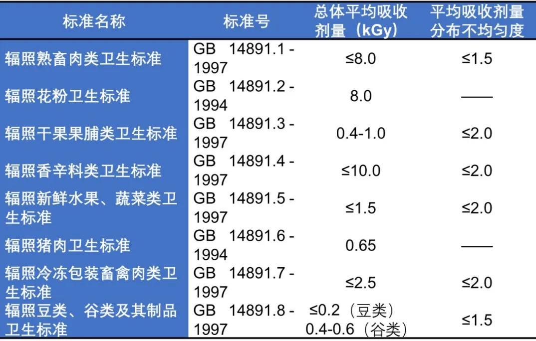 一方面是對允許輻照的各類食品中使用的最大總體平均吸收劑量進行了限定,相關最大總體平均吸收劑量均低於 10kGy ;