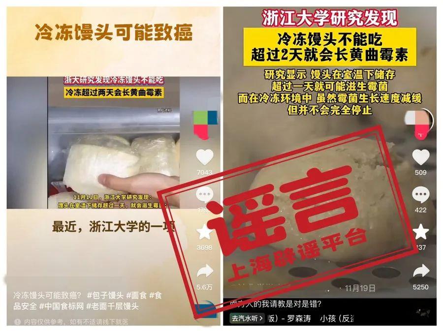 有些主播爲了博眼球、拉流量,故意炮製聳人聽聞的信息。最近出現的“浙大研究發現:冷凍饅頭不能喫,冷凍超過兩天會長黃麴黴素”就是典型。