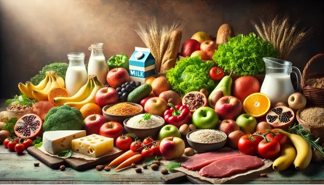 水果、蔬菜、乳製品、穀物和肉類補充礦物質(來源:作者 AI 生成)