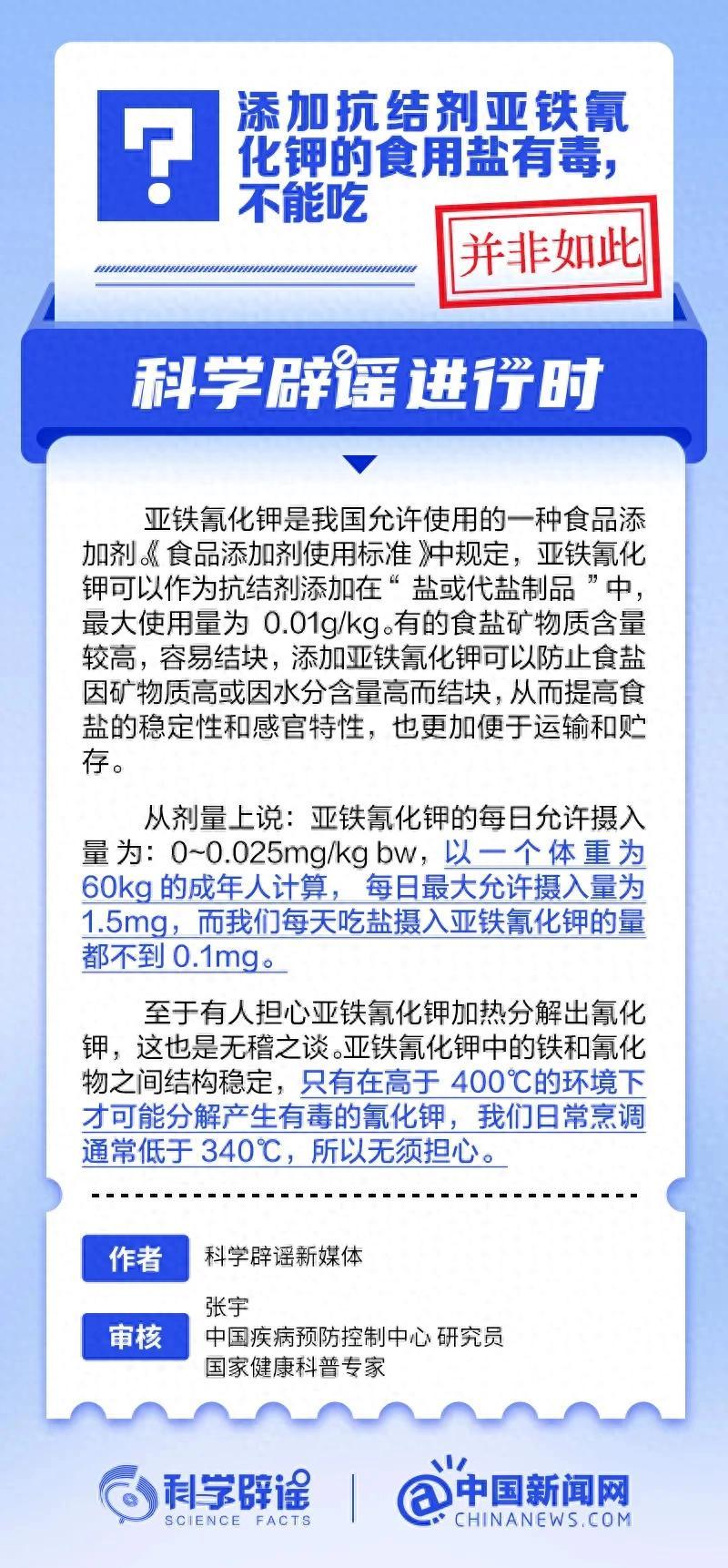 添加抗結劑亞鐵氰化鉀的食用鹽有毒,不能喫