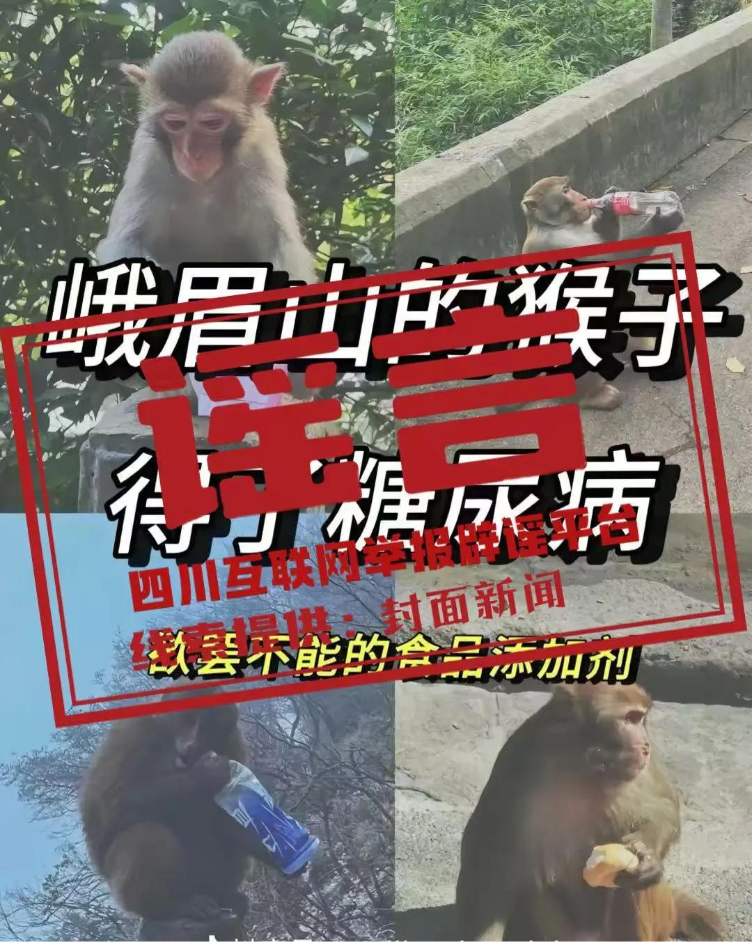 連日來,“峨眉山猴子普查,85%的都有糖尿病”的消息在網絡流傳,引發不少關注。該類消息還稱,由於遊客大量投餵甜食、飲料,使得峨眉山猴子每日攝糖量超標,在近期的一次普查中,85%的都有糖尿病。