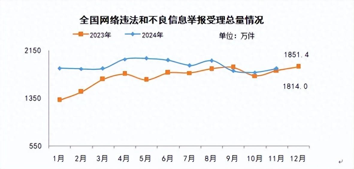 2024年11月全國受理網絡違法和不良信息舉報1851.4萬件
