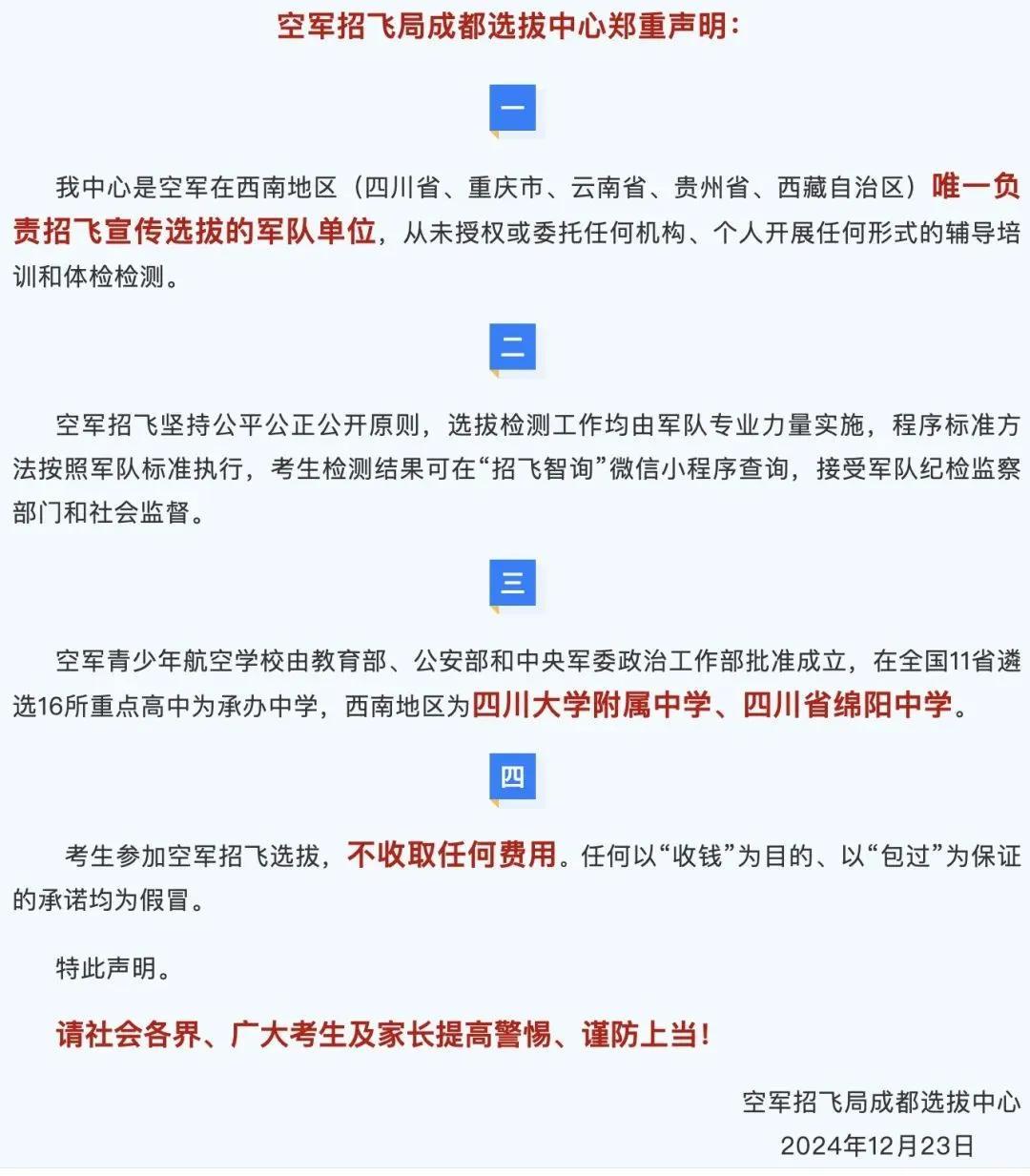 事關招飛,空軍招飛局成都選拔中心發佈聲明