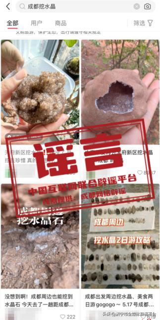 真相:近日,社交網絡平臺上出現萬篇關於“成都挖水晶”的筆記。經媒體記者採訪瞭解,網絡上提到挖出所謂的“水晶”,其實多爲方解石,採挖點位主要位於四川天府新區、彭州、都江堰等地。自然界中的方解石主要成分爲碳酸鈣,水晶則是二氧化硅,還可能含有其他微量元素,有些對人體有害,所以不建議隨身攜帶,拍照留念即可。在特定條件下,個人愛好者野外採挖水晶可能會違法,若破壞自然環境,或將面臨處罰。(來源:“成都網絡闢謠”微信公衆號、紅星新聞、“成都商報”微信公衆號)