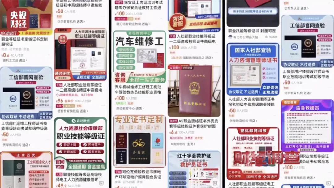 一些電商平臺上的商鋪,公開銷售國家頒佈的職業證書,且宣稱這些證書都可以“官網查驗”。