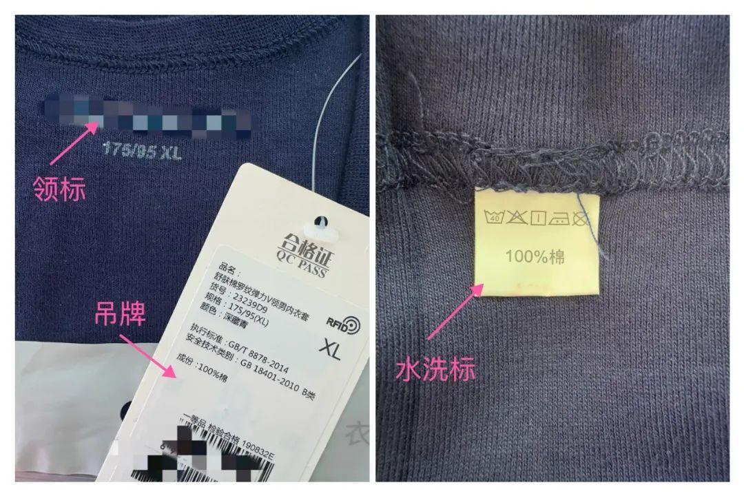 一件合格的內衣,應當具備“三標”,包括吊牌標、領標、水洗標。其中,吊牌標相當於衣服的身份證,應當包含品名、貨號、成分、執行標準、安全類別和標準號、生產者信息、洗滌方式。按照國家標準 GB 5296.4-2012《消費品使用說明 第 4 部分:紡織品和服裝》的要求,合格衣服的吊牌和標籤信息中,必須包含以上7項內容,缺少任何一項,都不符合標準。