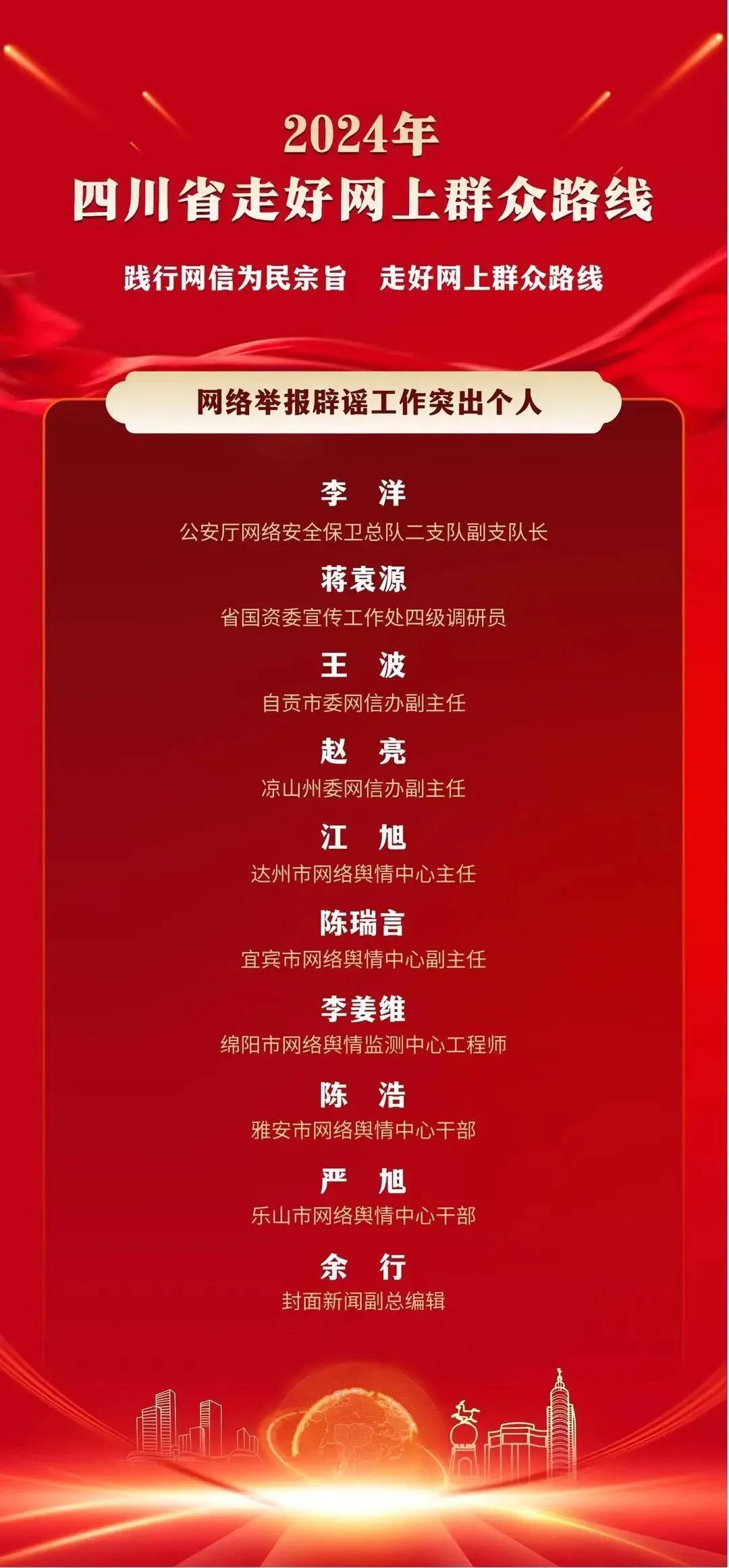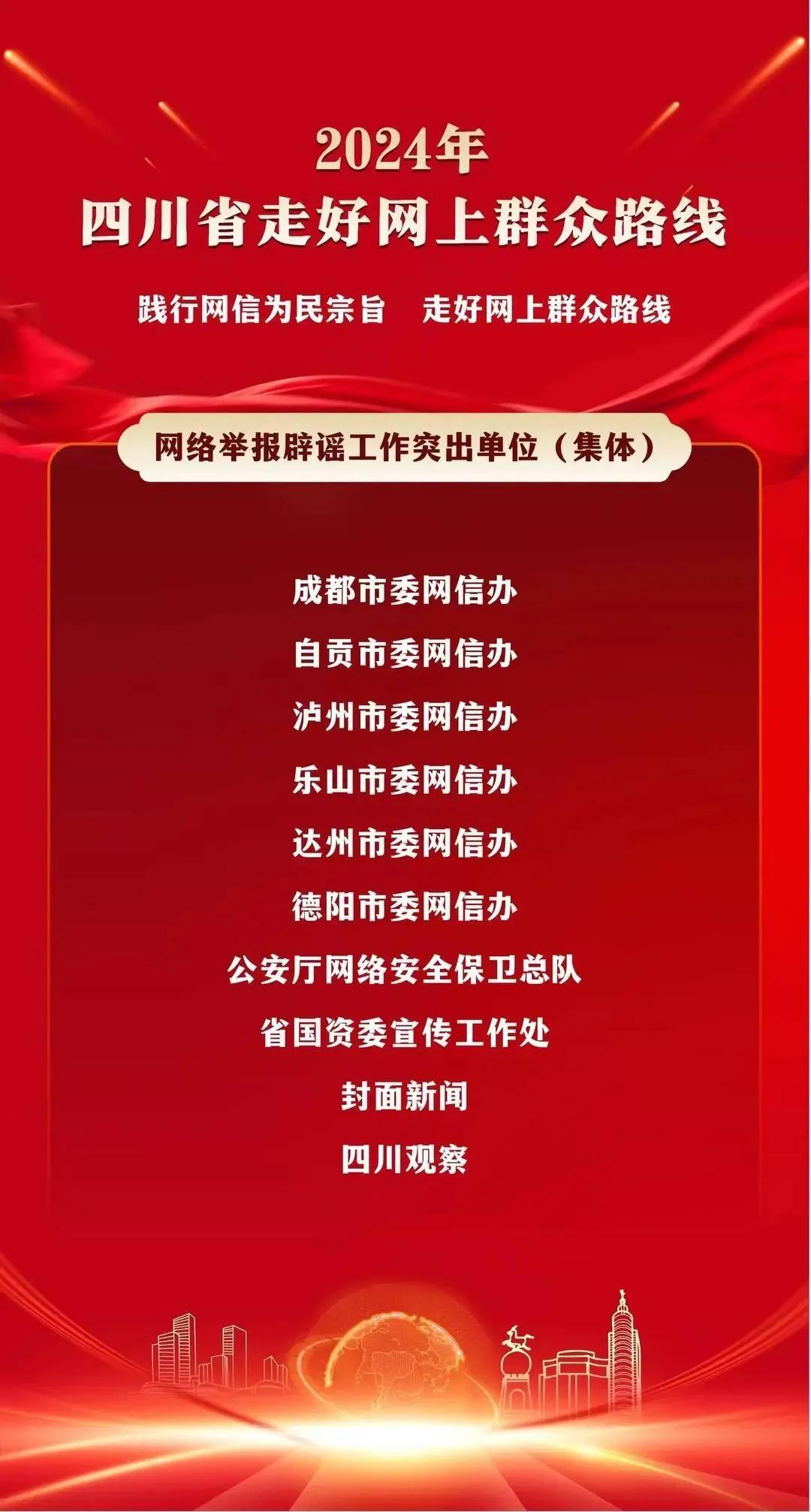 快來看!2024年四川網絡舉報闢謠工作突出單位(集體)和個人名單出爐