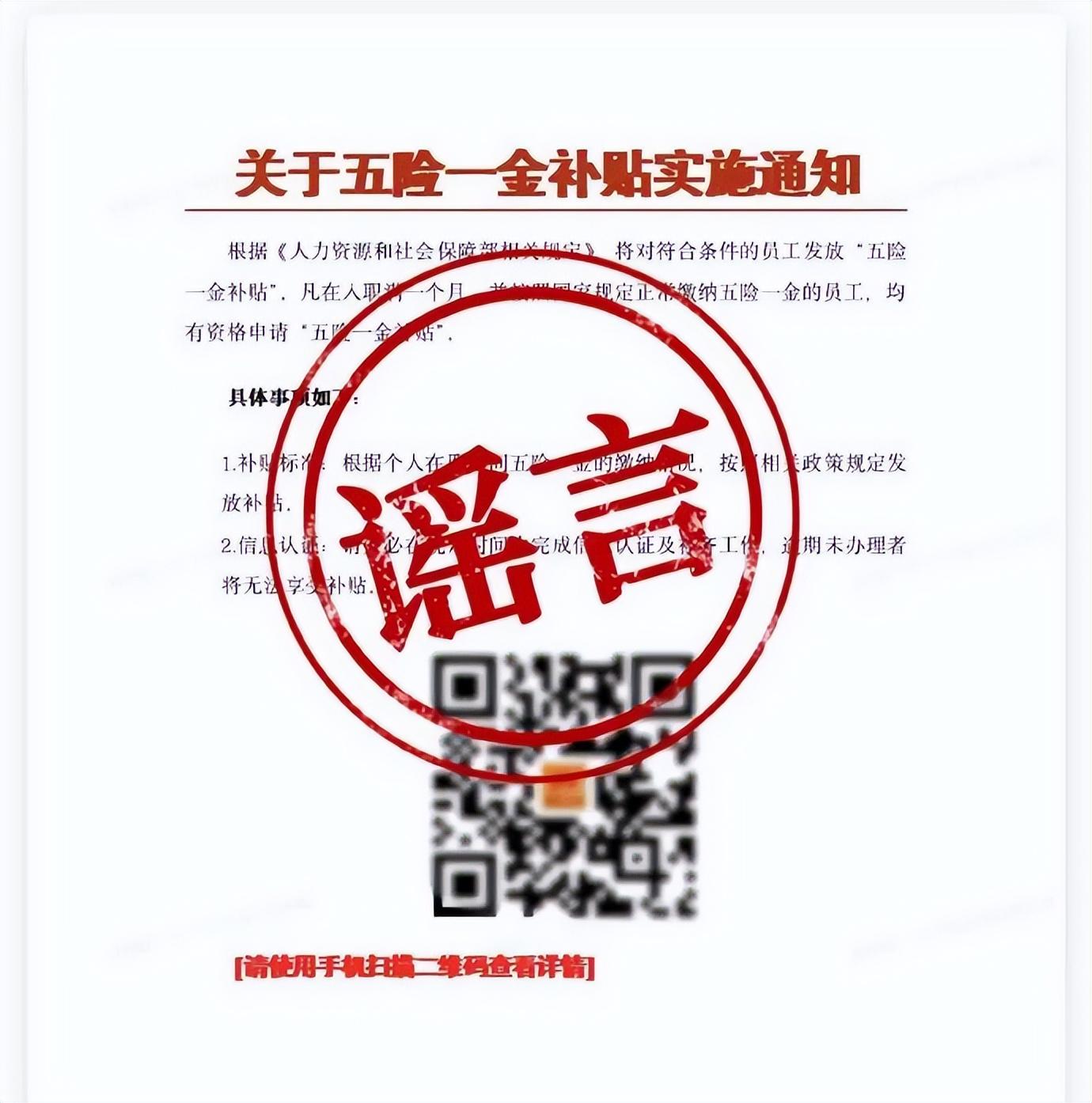 近日,有網民反映收到一份所謂《關於五險一金補貼實施通知》,該通知聲稱:“按照人社部相關規定,凡入職滿一個月,並按照國家規定正常繳納五險一金的員工,均有資格申請‘五險一金補貼’,請務必在規定時間內完成信息認證及補齊工作,逾期未辦理者將無法享受補貼。”對此,人力資源社會保障部表示,從未發放過所謂的“五險一金補貼”,上述通知爲不實信息且涉嫌詐騙。這類詐騙信息的常見套路是,利用非法途徑獲取網民手機號、微信號或郵箱賬號等,發送虛假信息,誘導羣衆掃描二維碼或點擊鏈接,進入假冒的“官方”小程序或網站,並填寫身份證、銀行卡、驗證碼等個人信息,以達到騙取錢財的目的。(來源:“人力資源和社會保障部”微信公衆號)