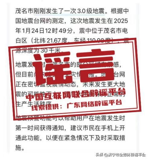 真相:近日,一張“廣東茂名電白區發生地震”的截圖在網絡上流傳,引發關注。對此,廣東省茂名市應急管理局相關負責人回應稱,近期沒有記錄到茂名地區有地震發生,電白區發生地震消息爲謠言。經社交媒體平臺檢索,網上流傳的內容來自某AI搜索軟件的回答。此信息中,發生震級、震源深度、震中經緯度均與數年前當地一次小型地震一致,疑似其斷章取義編織而成。